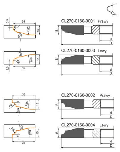 Frez do płycin 160x40x15/4z kształt A prawy GLOBUS
