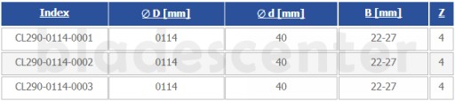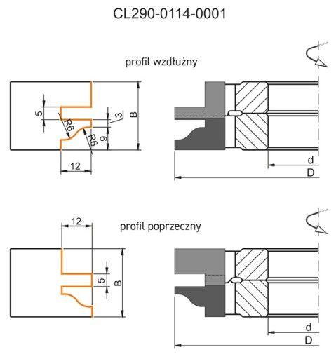 - 1 sztuka indeksu, np. CL290-0114-0001 zawiera zestaw frezów profilowych oraz zestaw frezów do kontrprofilu