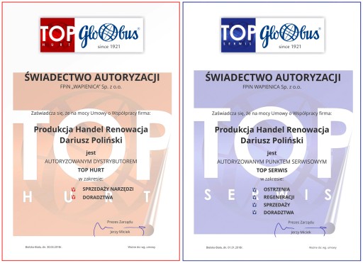 - Istnieje możliwość profesjonalnego serwisu oraz regeneracji sprzedawanych przez nas narzędzi. Świadczy o tym certyfikat TOP SERWIS.