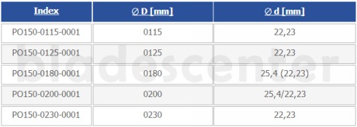 - Średnica otworu (∅ d [mm]): 25,4/22,23
