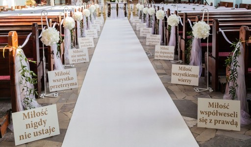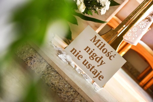 Tabliczki dekoracyjne na ślub z hymnem o miłości.