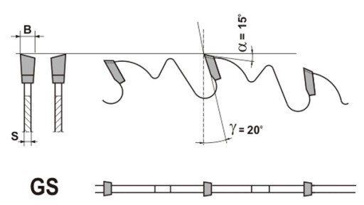 - piły o uniwersalnym zastosowaniu, używane głównie w przecinarkach stołowych do cięcia materiałów o szerokim zakresie przekrojów