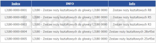 - Info: LJ180 - Zestaw noży kształtowych do głowicy LJ180 0000