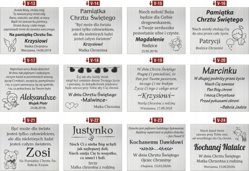 Dedykacja wykonywana jest na tabliczkach w srebrnym lub złotym kolorze (w przypadku braku informacji wysyłamy losowo).