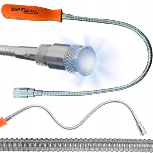 Chwytak magnetyczny KRAFT&DELE służy do podnoszenia i przenoszenia elementów metalowych o masie do 2 kg. Elastyczny uchwyt o zakresie pracy 57cm. Wygodę zapewnia ergonomiczna rękojeść, oraz umiejscowiona na końcu chwytaka dioda LED.