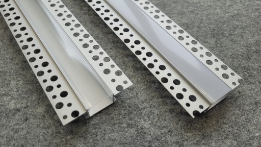 Profile można montować w płytach kartonowo gipsowych tworząc tzw. linie świetlne, po zagipsowaniu aluminiowe części nie są widoczne