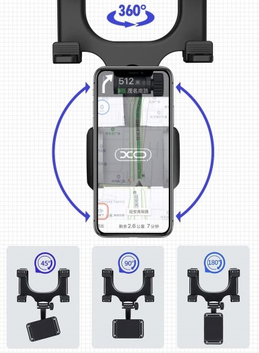 XO C70 to uchwyt samochodowy w wersji do zamocowania na lusterku wstecznym w samochodzie. Pozwala na dogodne umiejscowienie urządzenia w zasięgu wzroku kierowcy.