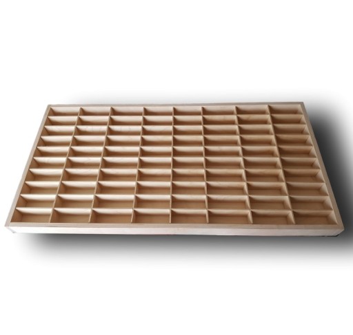 Przedmiotem aukcji jest solidna półka drewniana z przegródkami.