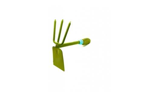 Szeroka motyczka z pazurkami wykonana z wysokiej jakości stali, wyposażona w ergonomiczny miękki uchwyt.