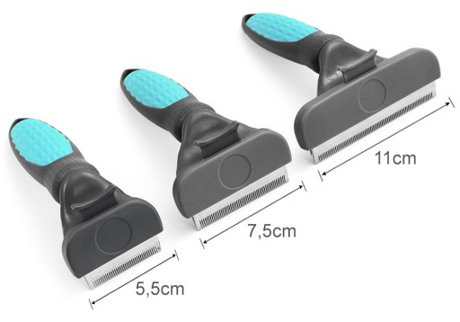 Krawędzie wykonane ze stali nierdzewnej sięgają przez wierzchnią warstwę sierści, aby łatwo i bezpiecznie usunąć luźny podszerstek bez ryzyka zacięcia skóry czy przycięcia sierści.