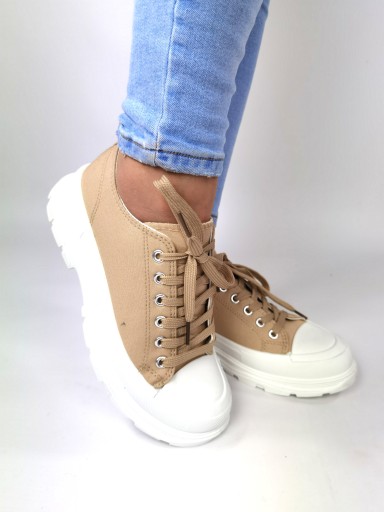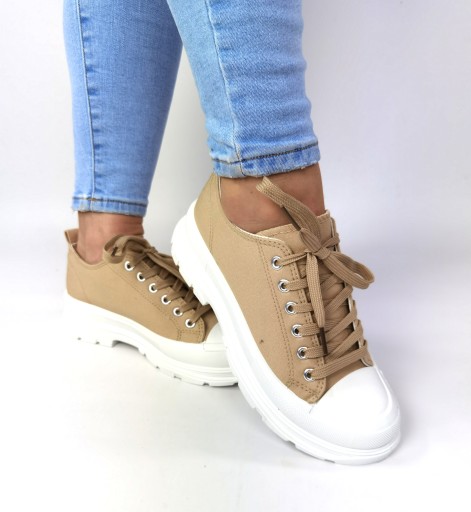 Najmodniejsze trampki w tym sezonie. Trampki klasyczne na gdubej podeszwie. Obuwie jest lekkie. Idealne do klasycznych jeansów oraz innych kreacji.