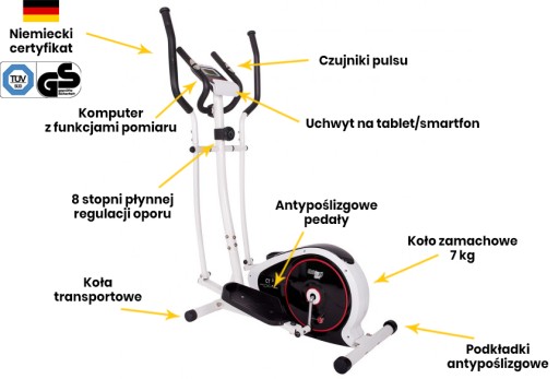 Idealne wyważenie sił oraz niemiecka precyzja wykonania sprawia, że urządzenie nie jest bardzo ciężkie, a przy tym jest stabilne i trwałe. Dzięki antypoślizgowym pedałom unikniesz wypadków i wszelkich kontuzji.