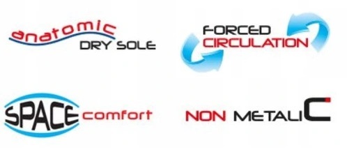 - FORCED CIRCULATIONSystem wentylacji wyciągowej w połączeniu z chłonną podszewką ( Obuwie oddycha i zapewnia maksymalny komfort).
