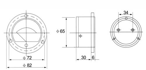 Analogowy (wskazówkowy, wskaźnikowy, wychyłowy) amperomierz panelowy. Do pomiaru prądu stałego do 5A. Posiada śrubę regulacji zera. Wbudowany bocznik. Wymiary: średnica całkowita 82mm (średnica części montażowej 65mm), wysokość całkowita 36mm (wysokość części montażowej 30mm).
