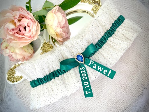 obwód uda, numer ozdoby, data ślubu, wasze inicjały lub imię narzeczonego