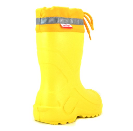 Specjalnie w trosce o bezpieczeństwo Państwa pociech kalosz został wykończony poliestrowym kołnierzem z taśmą odblaskową z firmy 3M, dzięki czemu nawet przy mglistej pogodzie, czy słabej widoczności Państwa Dzieci będą widoczne ze znacznie większej odległości.