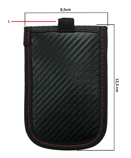 Uwaga: Etui posiada wewnątrz 2 kieszenie, jednak tylko druga kieszeń posiadająca specjalną potrójną membranę blokuje sygnał kluczyka