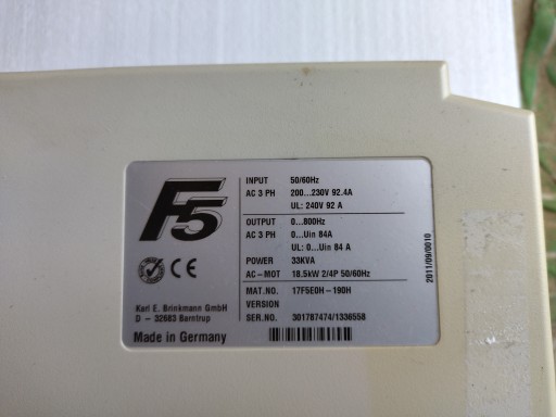 Falownik KEB F5 33kVA. Pozostałe dane na tabliczce obok.