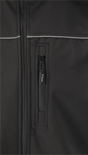 Kurtka softshell z trzema zapinanymi za pomocą wodoodpornego zamka błyskawicznego kieszeniami oraz z odpinanym kapturem.