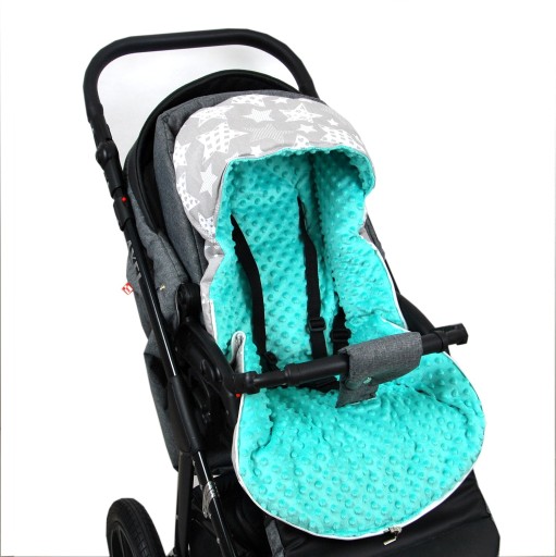Śpiworek pasuje do gondoli, spacerówki i fotelika samochodowego. Warstwę zewnętrzną śpiworka stanowi kolorowa