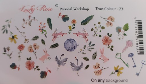 Seria TRUE COLOR- 73 to kolorowa kalkomania wodna z białą podstawą na cienkiej przezroczystej folii.