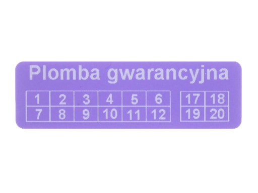 Oferujemy wykonanie 500 sztuk plomb gwarancyjnych w rozmiarze 40x12mm, z folii PURPUROWY VOID.