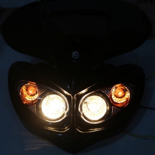 Wyposażona w dwie żarówki 25W(światła krótkie, długie), dwie żarówki 10W(kierunkowskazy), pełne okablowanie z kostkami.