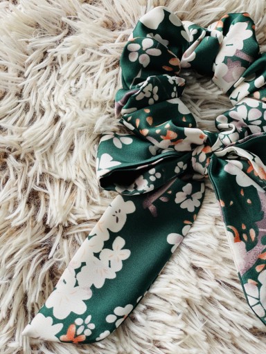 Gumka do włosów SCRUNCHIE WSTĄŻKA Kwiaty