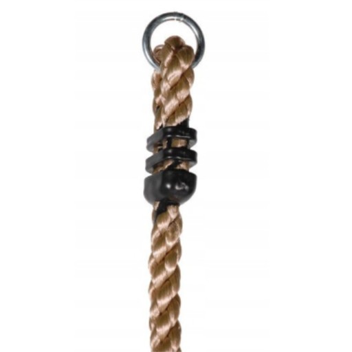 Mocna, pleciona lina z polipropylenu jest odporna na warunki atmosferyczne. Linę montuje się do belki lub odpowiednio wytrzymałej gałęzi drzewa za pomocą pierścienia ze stali galwanizowanej. Montaż do drewnianej ramy jest szybki i bardzo prosty. Zalecamy używanie zawiesi do huśtawek – ułatwi to instalację oraz podniesie komfort użytkowania.