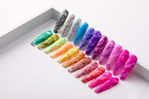 ☘️ Po nałożeniu koloru, nanieś bazę, na nieutwardzonej możesz rozprowadzić Water Ink, tworząc efekt marble stone,