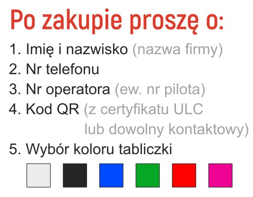 W wiadomości do sprzedającego proszę o podanie treści, która ma się znaleźć na tabliczce oraz wybór koloru aluminium.