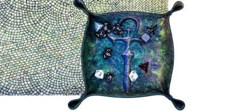 Dice tray jest wykonany z gumy o grubości 2 mm, znanej z mat do gier karcianych. W narożnikach znajdują się wytrzymałe, plastikowe napy, dzięki którym płaską matę możemy zamienić w miseczkę do rzucania kośćmi.