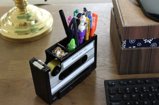 W tym oryginalnym przyborniku przypominający kasetę możesz przechowywać długopisy, ołówki oraz małe artykuły papiernicze.