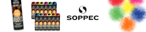 - Produkt zapewnia dużą swobodę użycia i daje duże pokrycie: przy użyciu wózka do malowania linii firmy Soppec 1 pojemnik aerozolu wystarcza do wykonania trwałej linii o długości 30 m oraz szerokości 2cm.