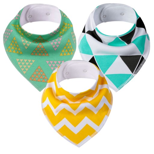 Zestaw 3 sztuk śliniaczków wykonanych z 100% bawełny, oddychający przyjemny w dotyku materiał nie podrażni skóry dziecka.