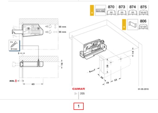 Zawieszka uniwersalna z regulacją do wieszania szafek górnych firmy CAMAR.