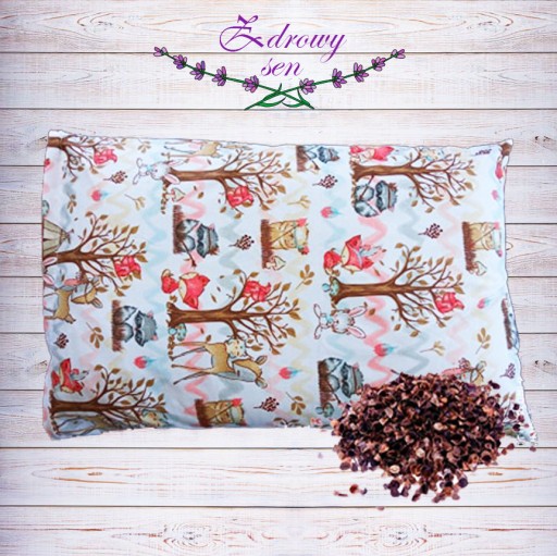 Poduszka posiada poszewkę 100% bawełna zapinaną na zamek oraz wsyp wypełniony ekologiczną łuską gryki również zapinany na zamek. W łatwy sposób umożliwia to dostosowanie wysokości poduszki do potrzeb dziecka