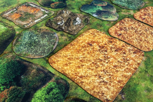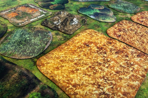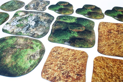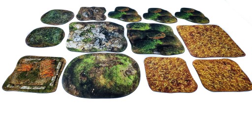 Wysokiej jakości zestaw gumowych terenów 2D z antypoślizgową powierzchnią. Łączy w sobie funkcjonalność klasycznych terenów oraz komfort stawiania figurek na płaskich powierzchniach.