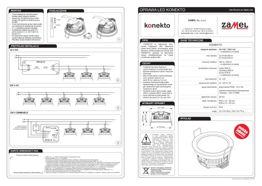 Lampki Konekto zostały zaprojektowane przez polskich konstruktorów i produkowane są w polskiej fabryce w Pszczynie. Obudowa jest wykonana z materiałów bardzo dobrze odprowadzających ciepło (Konduit), co ma znaczący wpływ na żywotność diod LED, co ma znaczący wpływ na żywotność diod LED, dlatego producent gwarantuje 5 LAT działania.