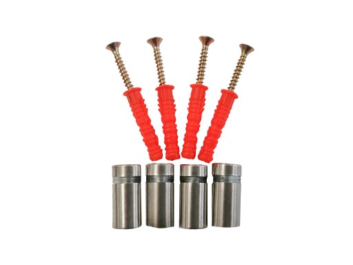 4 eleganckie dystanse montażowe INOX + 4 kołki rozporowe
