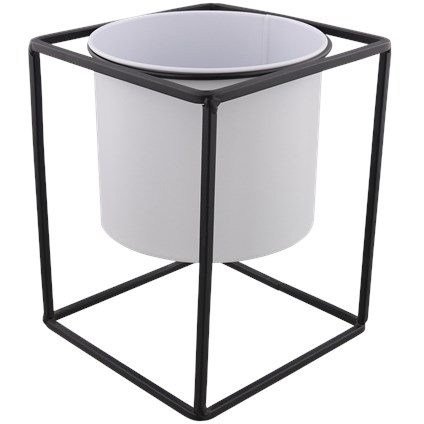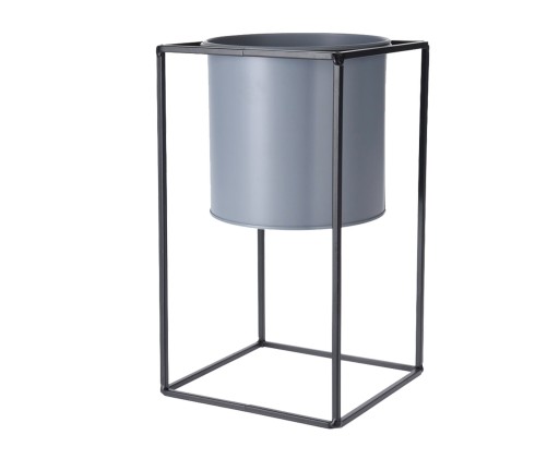 Kwietnik wykonany z metalu - doniczka osadzona na metalowej ramie. Sprawdzi się zarówno w mieszkaniu jak i na balkonie.