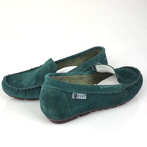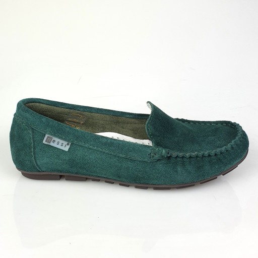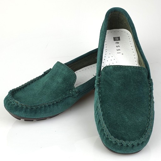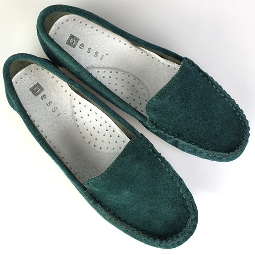 Mokasyny wykonane w całości z wysokogatunkowej skóry zamszowej w kolorze zielonym (zielony W5).