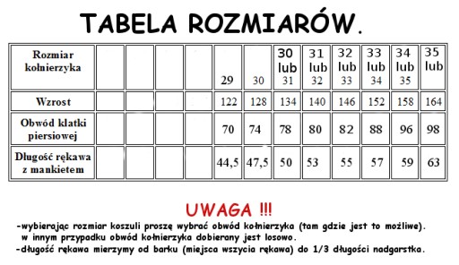 Prosimy wybrać obwód kołnierzyka tam gdzie jest to możliwe
