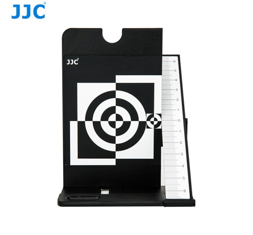 Karta kalibracyjna firmy JJC służy do ustawiania ostrości w aparacie fotograficznym.