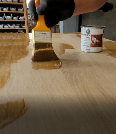 Jeżeli deska podłogowa wymaga przed wykończeniem wypełnienia szczelin czy drobnych ubytków, można zastosować środek Fiddes Filler Gel, który mieszamy z pyłem drzewnym powstałym podczas szlifowania. Jeżeli olejowosk nanosimy na drewno tłuste czy oleiste (np. wcześniej woskowane pastami woskowymi), należy je umyć i przed olejowoskiem zastosować środek Fiddes Barrier Seal, stanowiący swoisty izolant na bazie naturalnego szelaku. Środek ten zalecamy również zastosować w przypadku pracy przy starych i zniszczonych podłogach o dużej chłonności.
