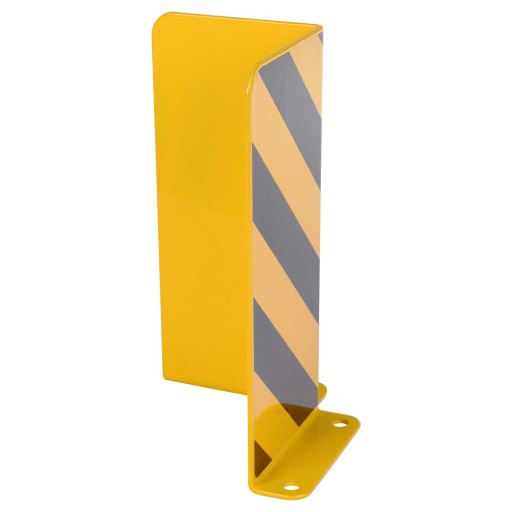 Montowana jest by chronić regały, maszyny lub elementy infrastruktury, takie jak słupy czy ściany, przed możliwym uderzeniem lub kontaktem z wózkiem transportowym. Odbojnica regałowa wykonana została ze stali o grubości 5 mm, pomalowanej proszkowo na żółto-czarny kolor.