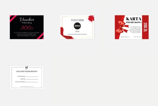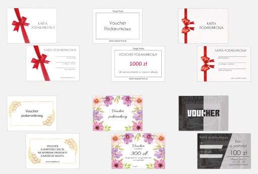 Bony podarunkowe z Twoim logo i danymi na bazie gotowych szablonów opartych o prosty kreator.