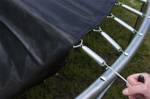 Mata wykonana z włókien PP (polipropylen) 280g/m2, mocowania na sprężyny mają 8 rzędów szwów z bardzo mocnych nici poliestrowych, odporna na promienie UV.