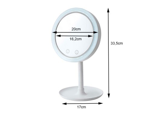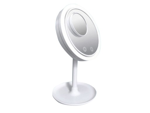 Wokół lustra zamontowane zostało oświetlenie ledowe, dzięki czemu możemy dokładnie zobaczyć swoje odbicie. Na lusterku wbudowane są dwa przyciski, jedno służy do oświetlenia LED, drugie do nawiewu. Lusterko posiada trzy stopnie regulacji nawiewu. Wentylator zapewnia chłód podczas nakładania makijażu.