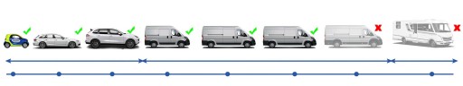 Przykładowo podnośnik dwukolumnowy TW 242 A może chwycić łapami i podnieść do góry poniższe pojazdy oraz inne podobne